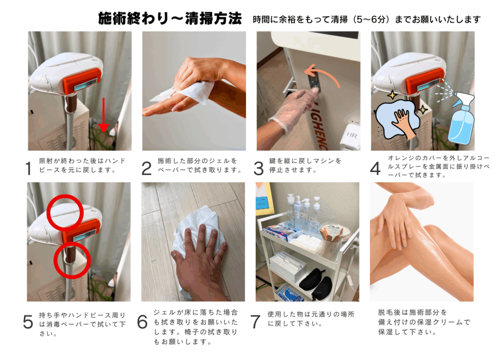 脱毛後のアフターケア(保湿)も帰宅後行ってください。