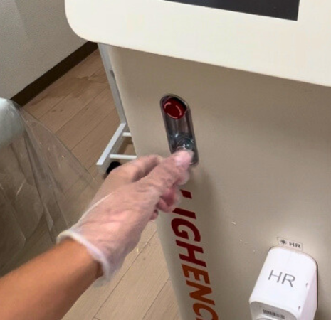 では清掃作業に入ります。ハンドピース周りは使用してすぐは熱が少し残っているので気をつけながら触ってください。